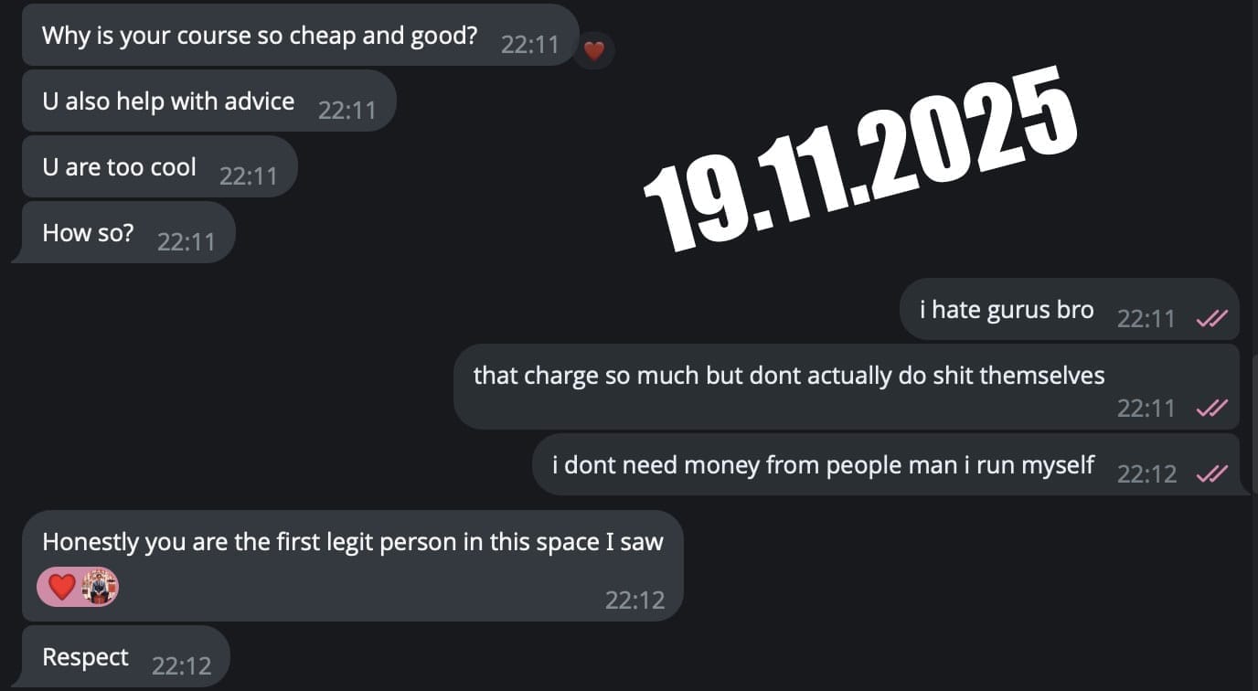 Started this entire thing for fun, and people are spreading misinformation, ended up enjoying making these videos, and the course just became bigger! (Unlike "GURUS" this isn't my income)